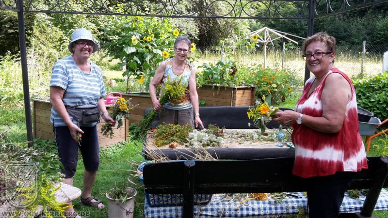 Wie schon lange Tradition binden die Frauen des OGV-Kirrberg für das Kirrberger Patronatsfest Mariä Himmelfahrt fleißig bunte „Werwische“ für die Gottesdienstbesucher und ganz besonders einen großen Strauß für den Altarraum.