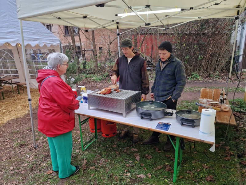 Vor Beginn musste natürlich gemäht werden und das Gerät wieder gereinigt werden. Ebenso mussten Getränke und Tische und Bänke zum Hortus Fructus geschafft werden.